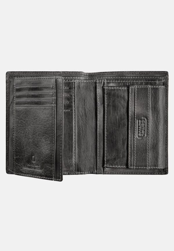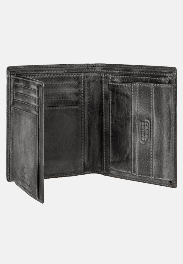 Blend casual style with timeless vintage appeal. This portrait-format wallet is crafted from genuine 100% leather for lasting durability. Smartly organized interior features: 12 credit card slots, 6 additional slots, 1 mesh pocket, 2 note pockets, and 1 secure coin compartment.