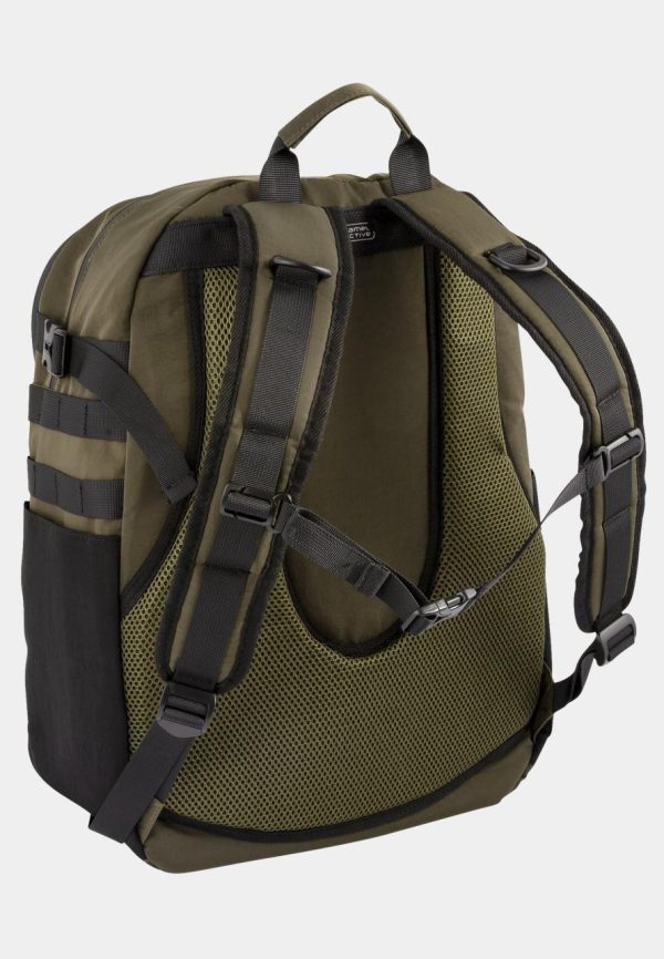 - Three zippered mesh pockets inside and two open slip pockets inside