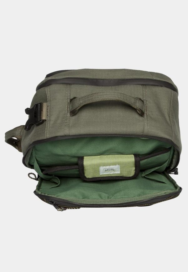A robust material mix of cotton and nylon give this series its modern outdoor look. The Backpack L has a practical interior layout and is very lightweight. This style is also a travel bag with many functional compartments. It can also be worn as a crossbag, which makes this style the perfect companion for the “urban explorer”.