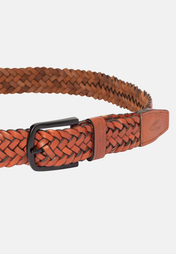 This braided belt in real leather fastens with a classic metal clasp and prong. Its distinctive rugged look will stylishly round off your leisure and denim outfits. There is a camel active logo embossed on the belt loop.