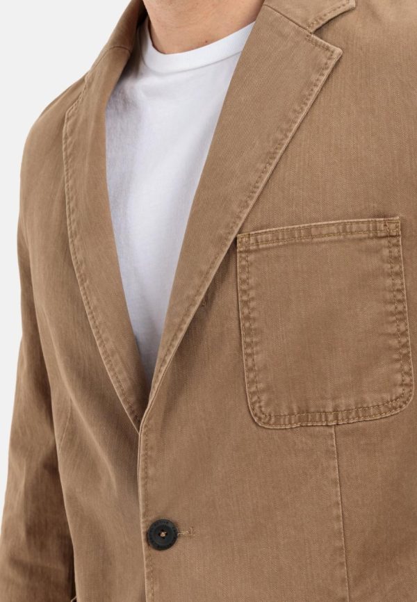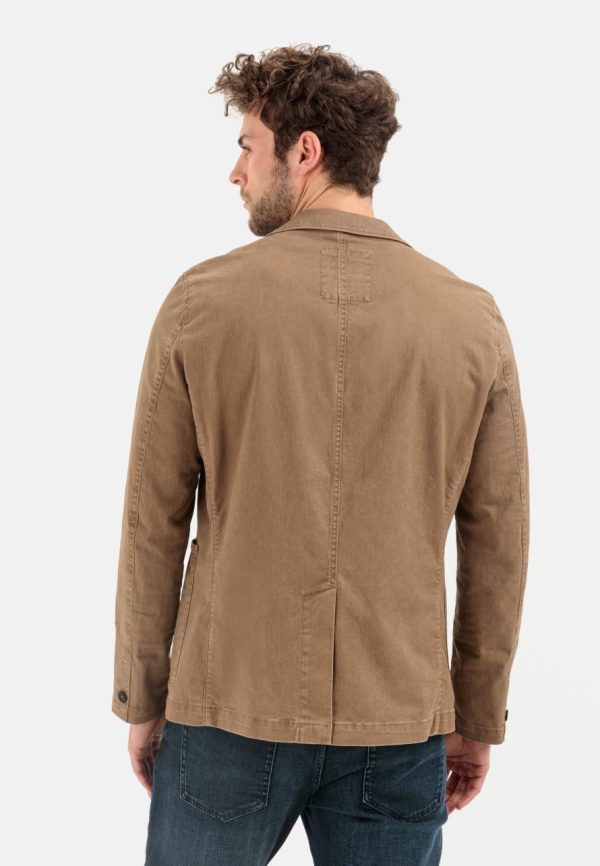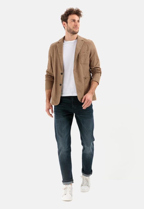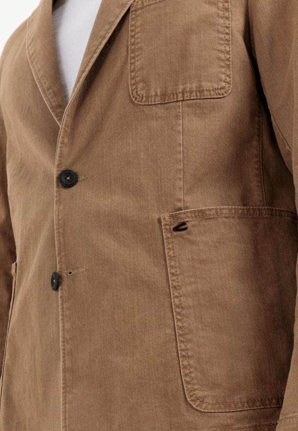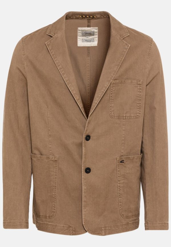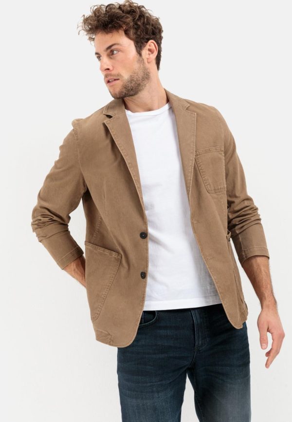 A modern blend of elegance and sporty character: This jacket features a breathable cotton with some additional elastane, creating a robust and comfortable fabric. The casual look offers a straight regular fit in combination with a classic lapel collar – a blend of styling designed to suit both everyday wear and special occasions. There is an embroidered camel active logo on the left pocket.