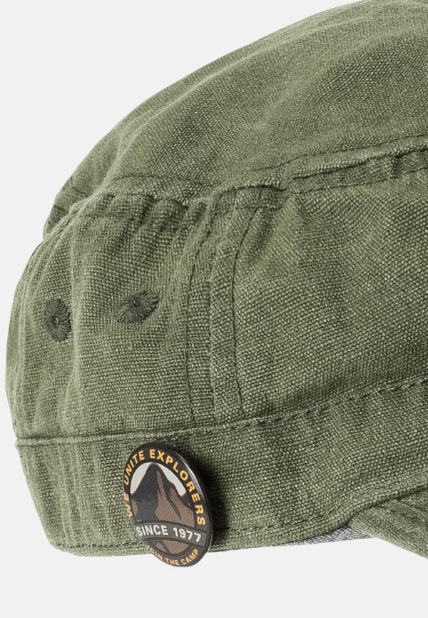 A cool accessory, the Cuba cap is made from pure cotton with a canvas structure. The casual look of the cotton canvas is complemented by a matt black camel active pin and camel active patch on the sides. The military cap has a curved peak and a metal buckle at the back to adjust the size. Cool looks with a field jacket, sweater and jeans are perfectly complemented by this cap.