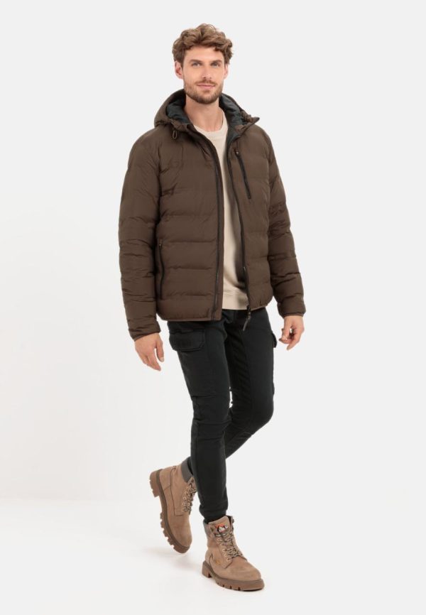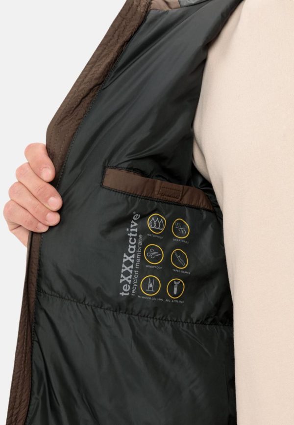Lightweight teXXXactive® quilted jacket in a waterproof, windproof, breathable functional fabric. In addition to its 3,000 water column rating, the down-free jacket has taped chambers and seams for added protection in wet and rainy conditions. Other practical features of this high-tech jacket include chest pockets, side zip pockets and a reflective teXXXactive® print on the back. The camel active logo print on the left sleeve is complemented by a contrasting detail on the lining.