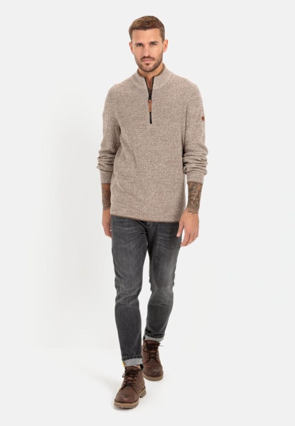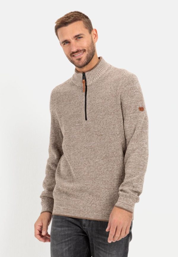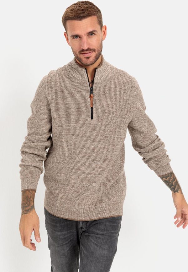 Men Pullover & Cardigan | Camel Active Fine Knit Troyer Made From Cotton Mix Beige