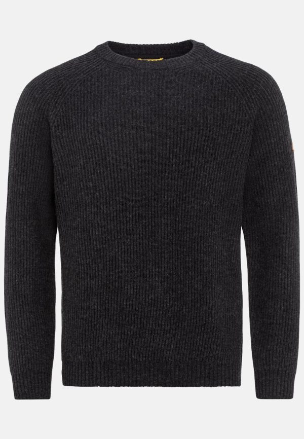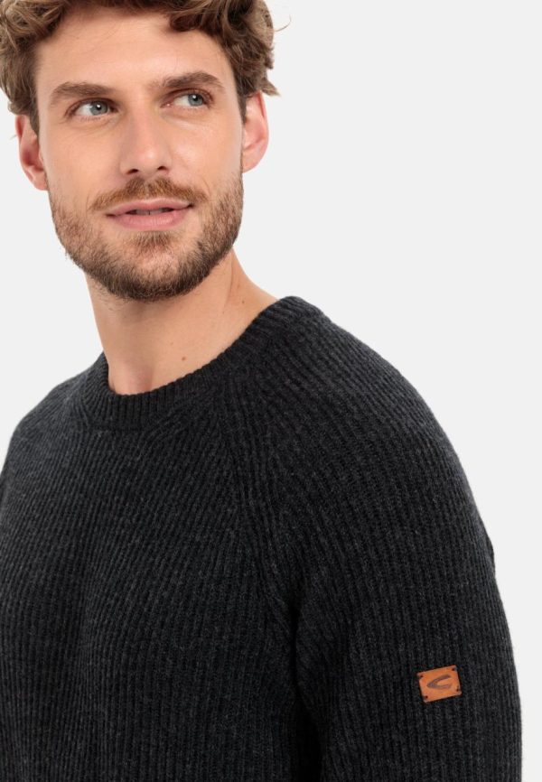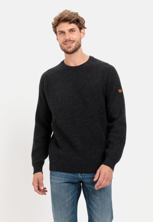Knitted jumper in pure lambswool for optimum warmth. Ribbed knit with contrasting raglan seams for a rugged look. The basic design with a crew neck and regular fit is timelessly modern. The high quality lambswool jumper is a safe fashion investment that will be a pleasure to wear for many seasons to come, keeping you warm on cold days. A camel active leather badge is attached to the left sleeve.