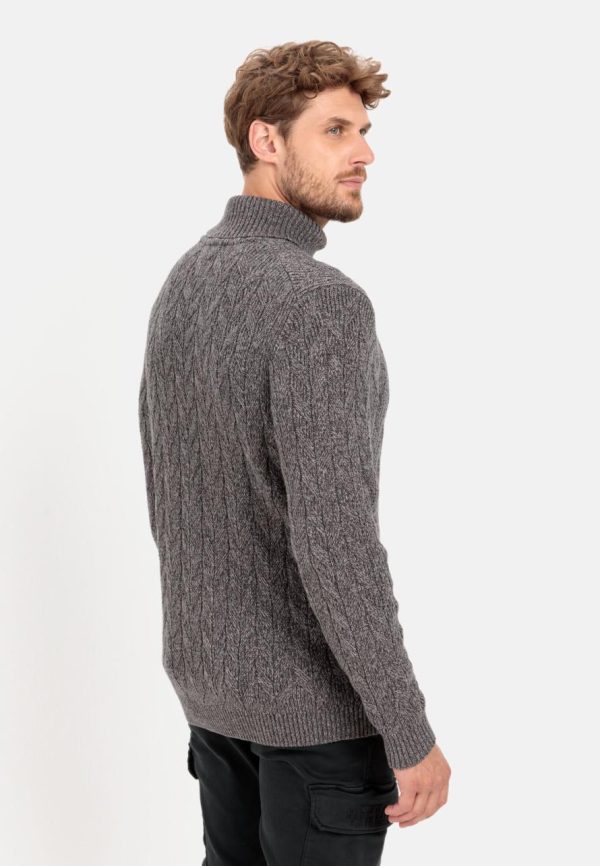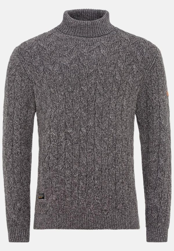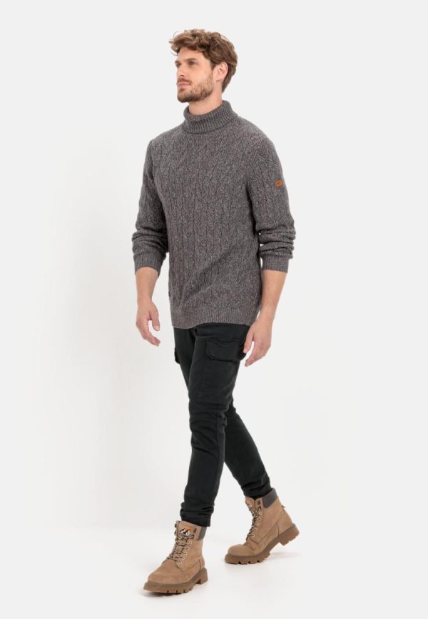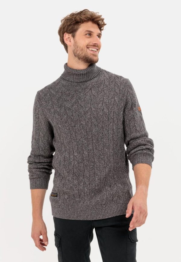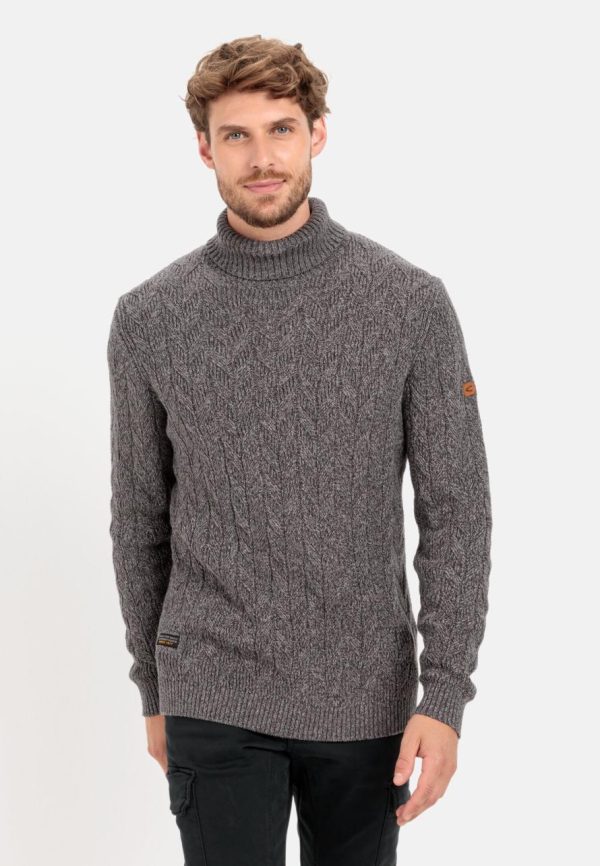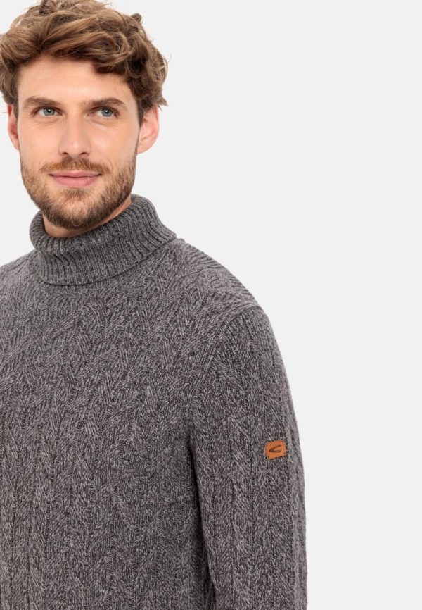 The turtleneck is a classic style. While the turtleneck keeps your neck cosy and warm, the bold cable-knit pattern creates a rugged look. The cotton blend, with a low synthetic content for optimum wear and care, is finished with a two-tone twisted melange yarn. The pullover also features a camel active leather badge on the left sleeve and a typical camel active patch above the hem.