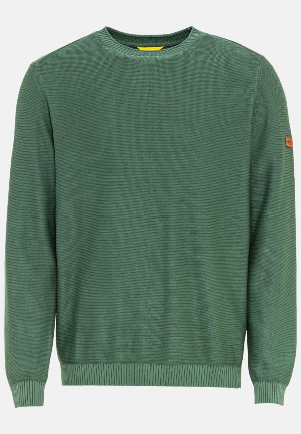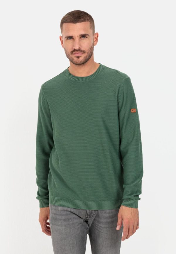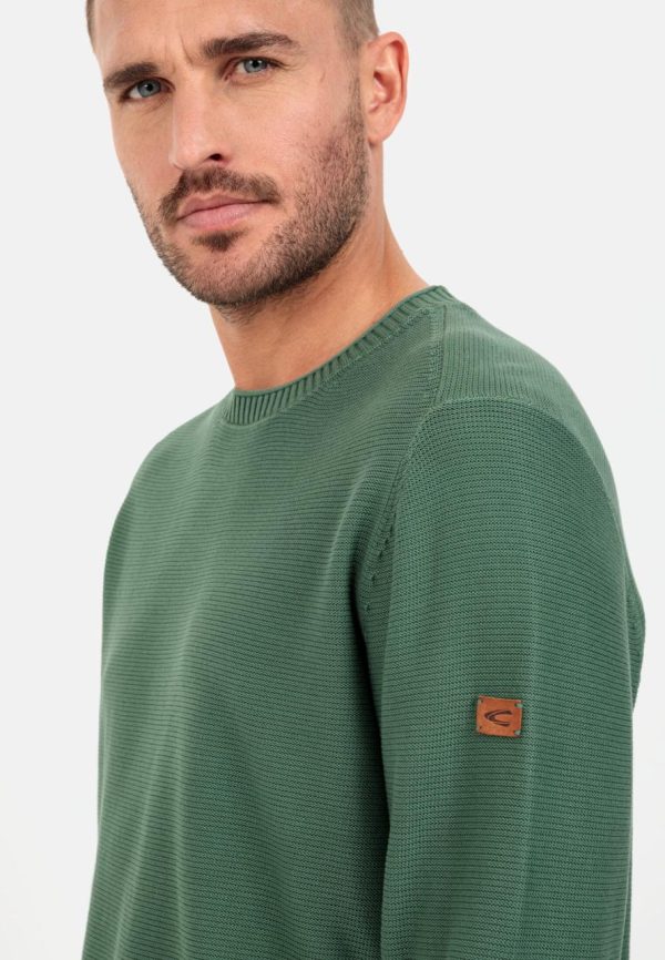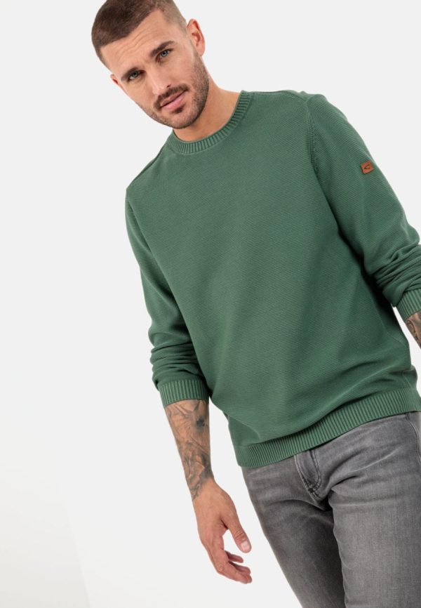 Fashion trends come and go, but this regular-fit knitted jumper in organic cotton is a timeless, everyday piece for your urban and outdoor wardrobe. As well as the great wearability of the sustainable cotton, the round-neck pullover has a casual, slightly overcut shoulder seam, structured knit and authentic distressed look. A camel active badge on the left sleeve adds the finishing touch.
