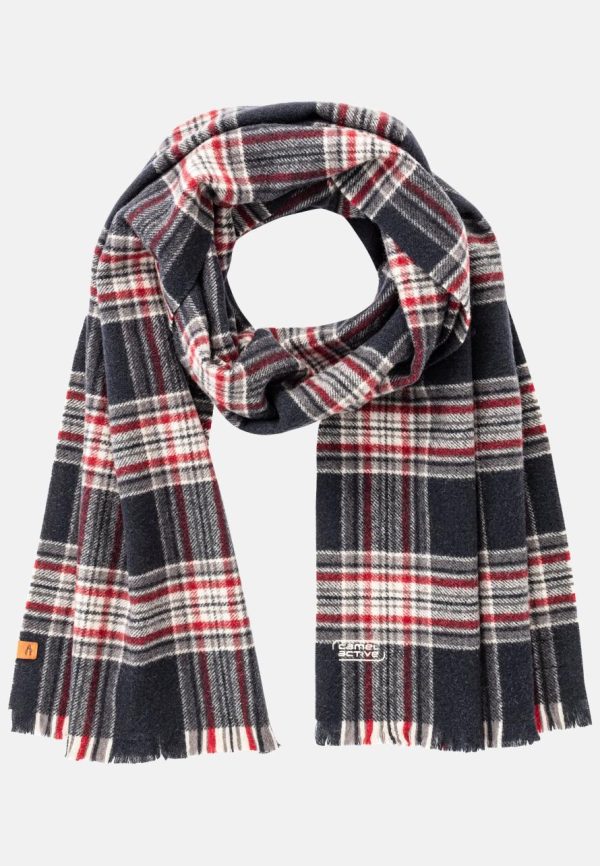 This pure wool woven scarf is a classic accessory for smart outdoor style. Its striped pattern and open fringe edges give it a casually elegant look. The high quality wool ensures optimum wearer comfort. This makes the scarf a pleasantly warm, breathable and skin-friendly accessory for cool, cold to icy days in autumn and winter. The branding feature is the embroidered camel active logo.