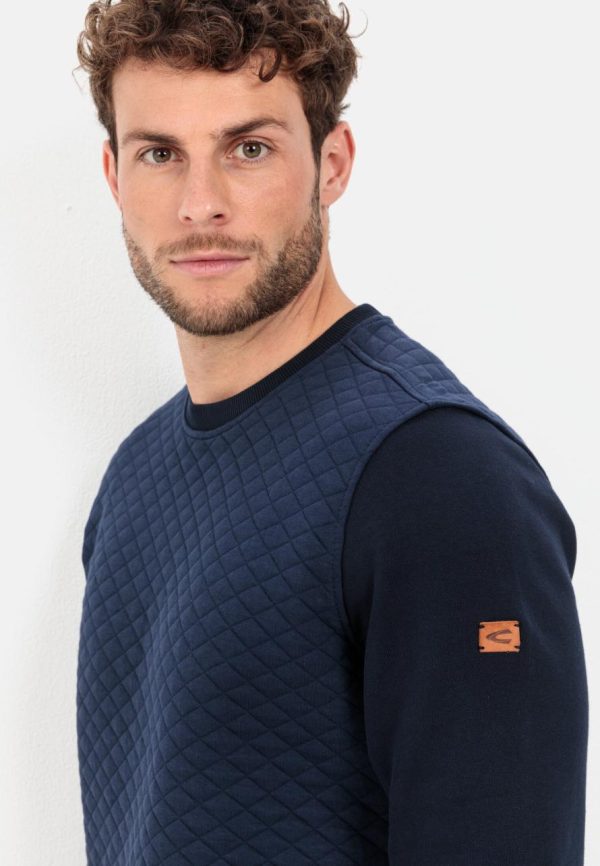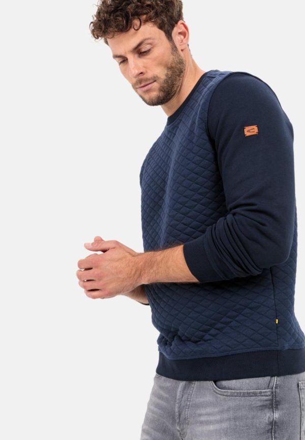 The diamond quilted sweatshirt is made from a breathable and easy-care cotton blend. Comfort and style are guaranteed. Special highlight: The quilting is only on the torso, the sleeves are made of smooth sweat. A design element that gives the pullover a very individual look. The pullover has a regular fit and a camel active label on the left sleeve.