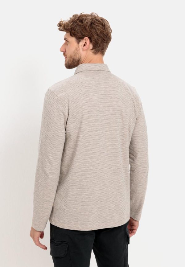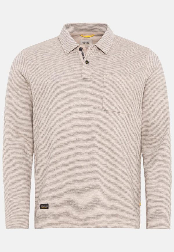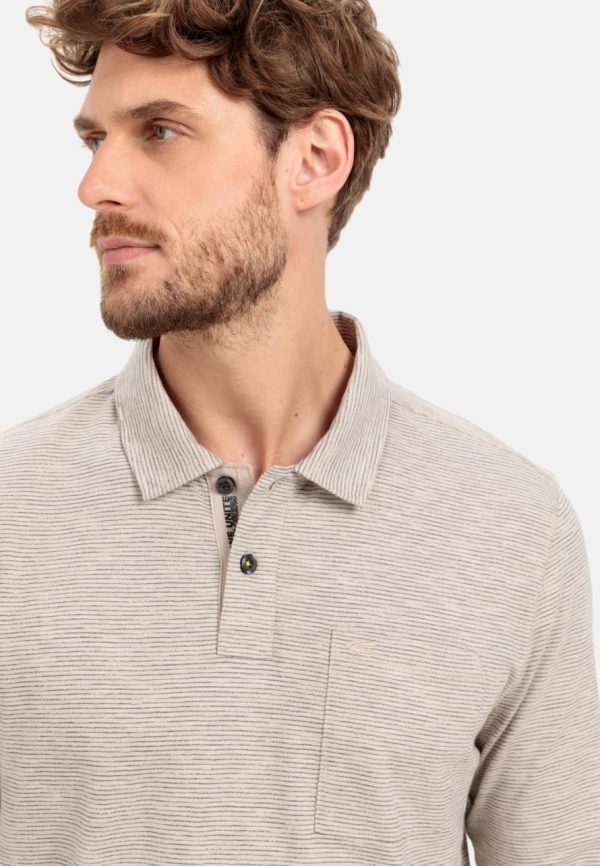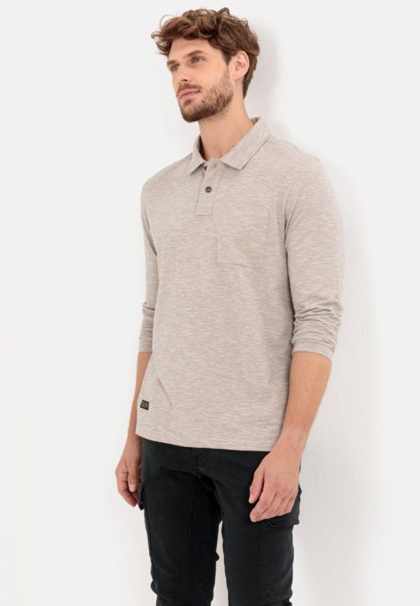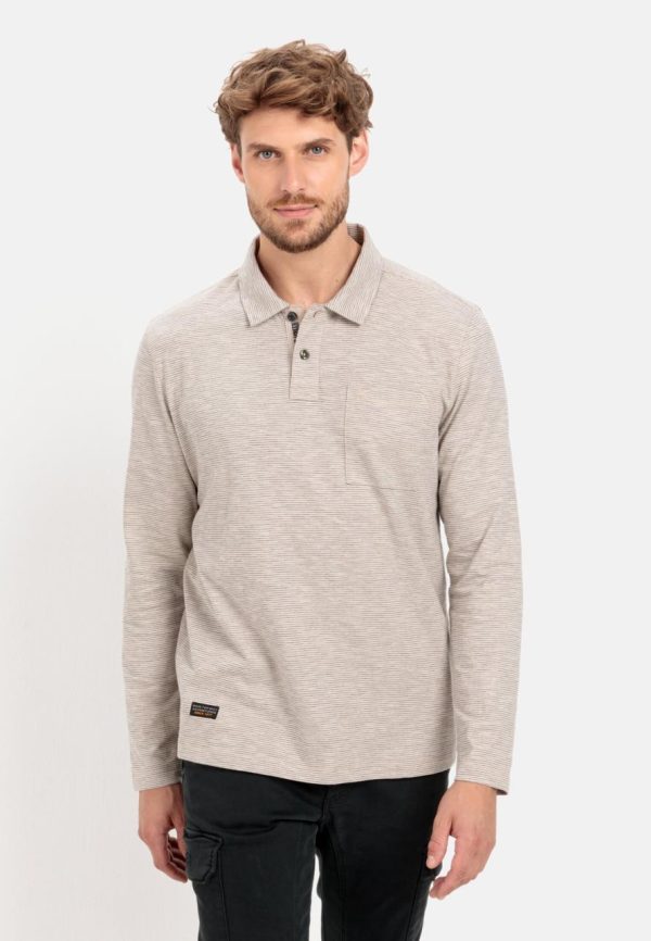 A long-sleeved polo shirt with a regular fit that is both stylish and comfortable thanks to its pure cotton jersey fabric. The pure cotton fabric has a soft peach skin effect. It is breathable, durable and easy-care. In addition to the fine striped pattern, the long-sleeved polo shirt features camel active brand details such as an embroidered logo on the chest pocket.