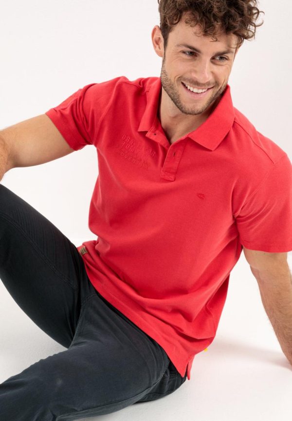 Signal your sporty character with this classic cotton polo shirt. Its natural fabric in a shape-retaining piqué quality lets your skin breathe, absorbs moisture, and is very hard-wearing. The shirt comes in a straight regular fit and has been finished using a garment-dye process to create a dynamic color effect. There is an embroidered camel active logo on the left chest with a decorative badge on the right upper arm.