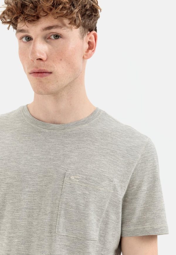 This pure cotton tee is the ideal choice for outdoor adventures large or small. The natural fabric allows your skin to breathe and so will feel very comfortable on the skin. The round-neck design with a fine stripe pattern adds a tasteful contemporary look to the pleasant feel of this shirt. To round off the look, there is a camel active logo on the left chest pocket and a brand label on the hem.