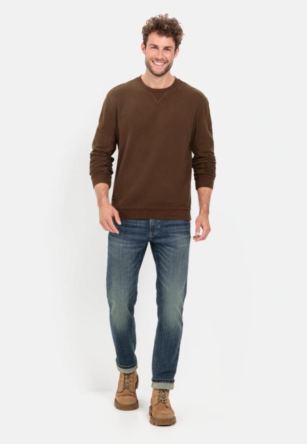 This premium pure cotton sweatshirt delivers the perfect blend of style and performance for your active lifestyle. Engineered with exceptional breathability, the soft sweat fabric offers easy maintenance and long-lasting durability. This relaxed-fit pullover provides ultimate comfort for all your adventures while maintaining a sporty, polished appearance. Standout features include the distinctive camel active logo embroidery and authentic vintage wash effects achieved through garment dyeing.