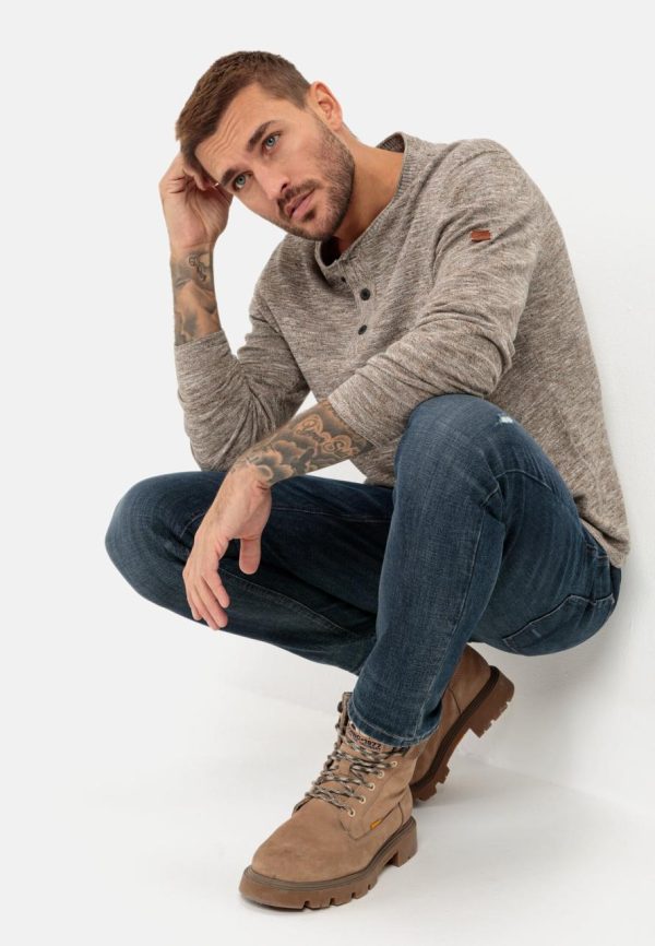 Experience exceptional comfort with this premium pure cotton henley shirt featuring a classic regular fit that’s perfect for everyday wear. The fine-knit fabric offers superior breathability and effortless maintenance. The shirt showcases a stylish ribbed stand-up collar with turtle neck design and a convenient short button placket. The innovative space-dyed yarn creates a distinctive mottled appearance that sets this piece apart. A signature camel active leather badge on the left sleeve adds the perfect finishing touch to this sophisticated, clean design.