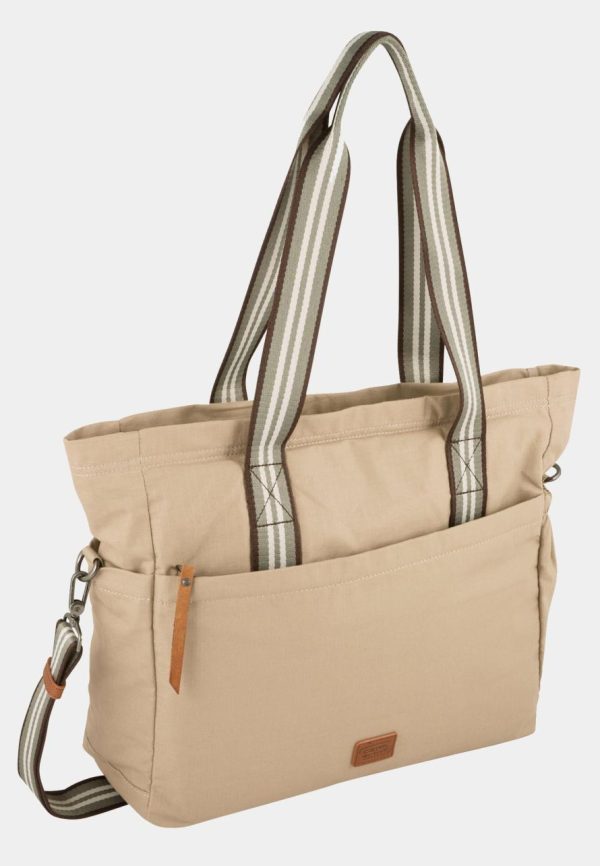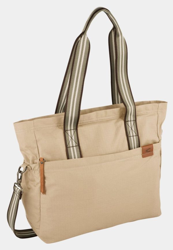 - Two longer shoulder straps in camel active herritage stripe pattern