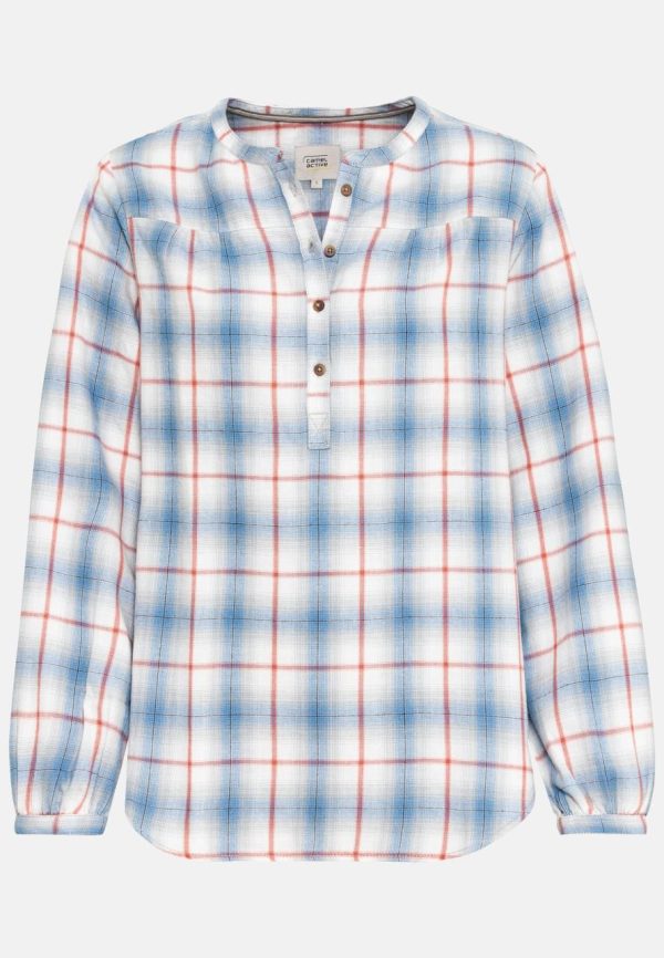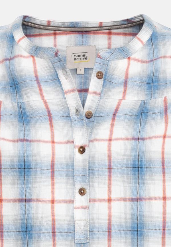 This lightly brushed plaid flannel slip-on blouse is the ideal casual essential for autumn and winter. Slip it on and feel good. The soft, brushed fabric with a high cotton content provides a warm and breathable feel. The synthetic content maximises the easy-care and hard-wearing properties of the regular fit blouse. It has a narrow stand-up collar, narrow cuffs and feminine gathers. The hem has a camel active label in jacron.