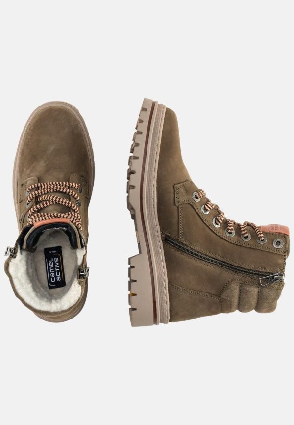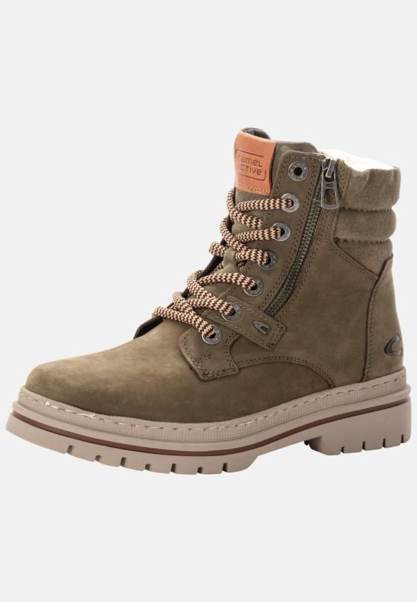 Women Boots | Camel Active Lace-Up Boot With Warm Wool Lining Khaki