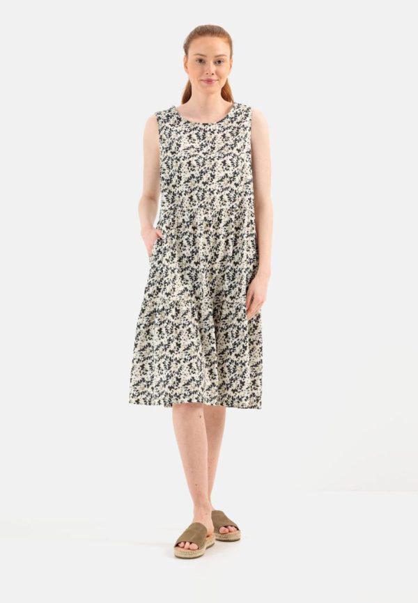 This summery pure-cotton tiered dress is so lightweight and feminine. It comes in a straight-cut regular fit which feels light and airy, and is also breathable, gentle on the skin, and durable enough for everyday wear. Pockets on the side seam of this sleeveless dress add a practical detail, and the look is completed by a round neck and a camel active jacron label on the side pocket.