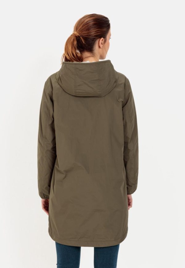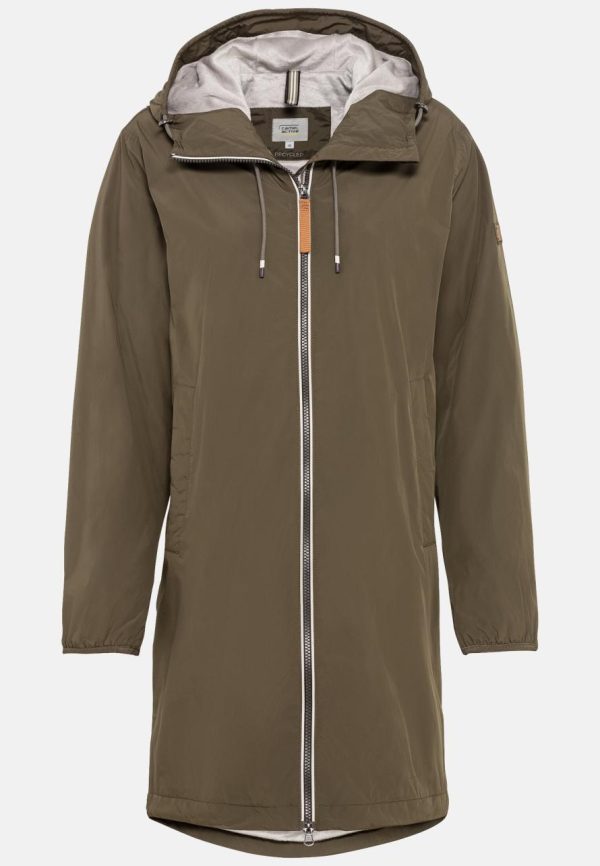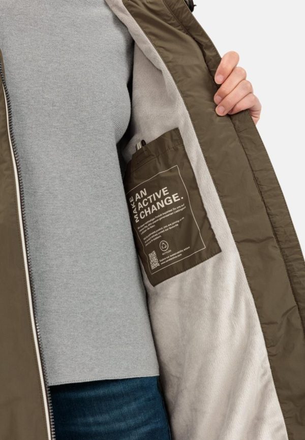 The down-free, recycled polyester functional coat is designed to keep you outdoors in all weathers. The recycled fibre fabric has a water-repellent and windproof finish on the outside. A soft plush lining keeps you warm on the inside. A relaxed fit, fixed hood, 2-way zip and welt pockets with concealed press studs round off the practical details. There is a camel active label on the left sleeve.