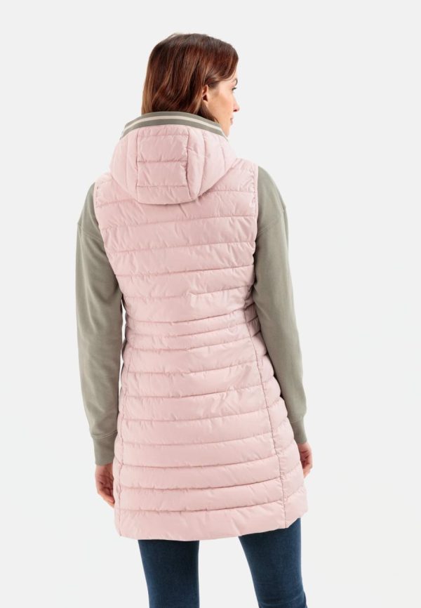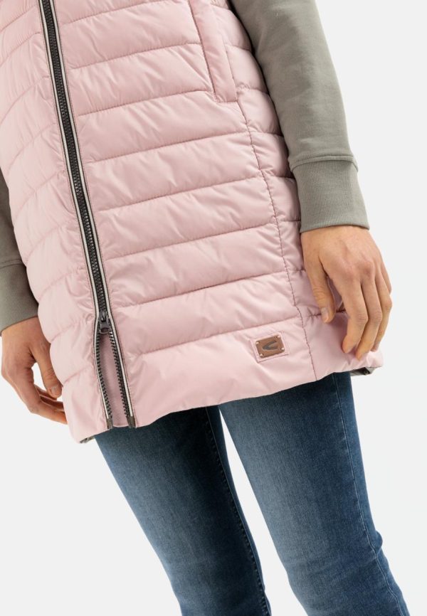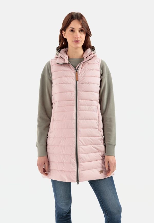 This long-cut waistcoat made from a high-tech performance fabric is the ideal choice for a relaxed leisure look. It offers an easy-care texture which is also windproof and water-repellent. The down-free synthetic fiber insulation provides good heat retention within a lightweight design. Its detachable hood has a contrasting elastic band which adds a tasteful finishing touch.