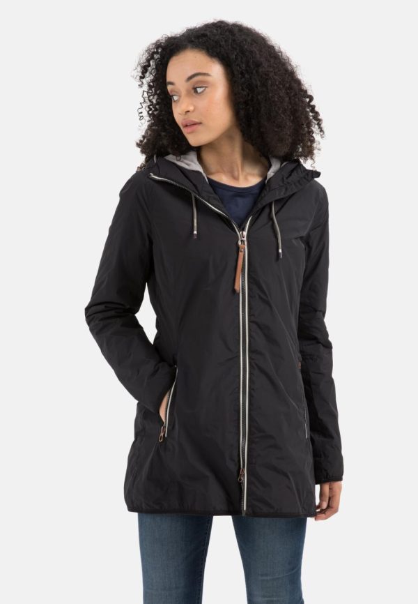 Women Jackets & Vests | Camel Active Long Windbreaker Made From Recycled Polyester Black