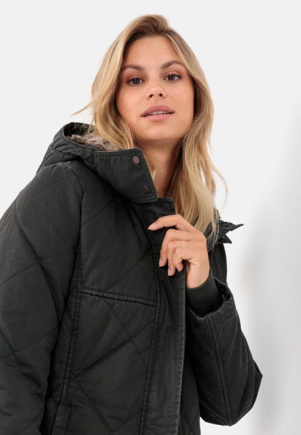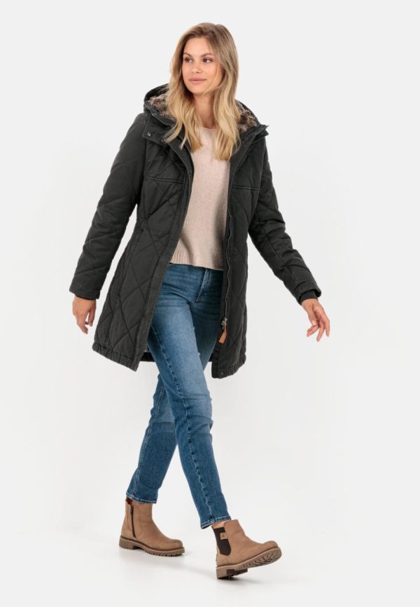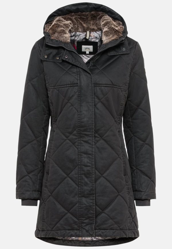 The down-free quilted coat adds a cool vintage look to your autumn and winter outdoor styles. The cotton blend is finished with an authentic distressed finish. Cosy highlights: the hood with soft plush trim and the high collar. Together, they protect you from the elements in the most comfortable way. Other practical features of this regular fit coat include zipped pockets, a storm flap over the 2-way zip and knitted storm cuffs. With camel active branding on the left sleeve.
