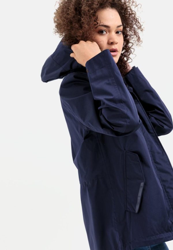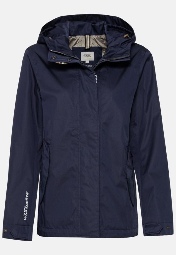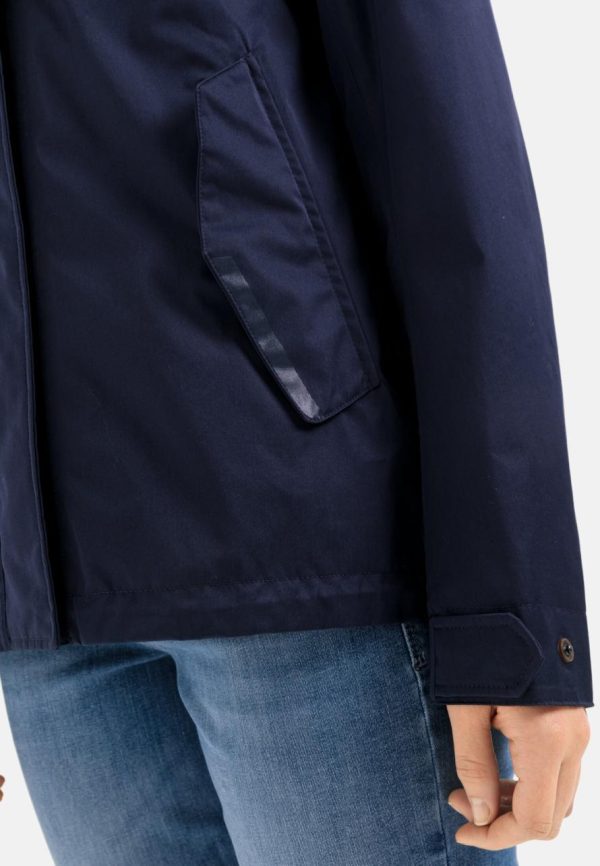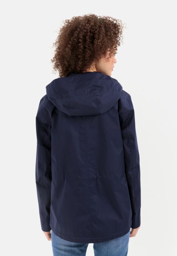 This jacket offers a fusion of cozy natural materials and practical synthetic fibers. The result is a breathable outer fabric which includes organic cotton and creates a PFC- and PTFE-free texture which is wind- and waterproof. The weatherproof jacket has a sporty look and its durable welded seams are a practical addition for active everyday wear. A reflective tonal print on the hood adds an attractive finishing touch.