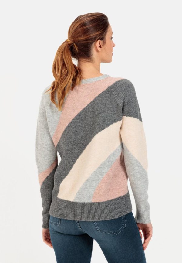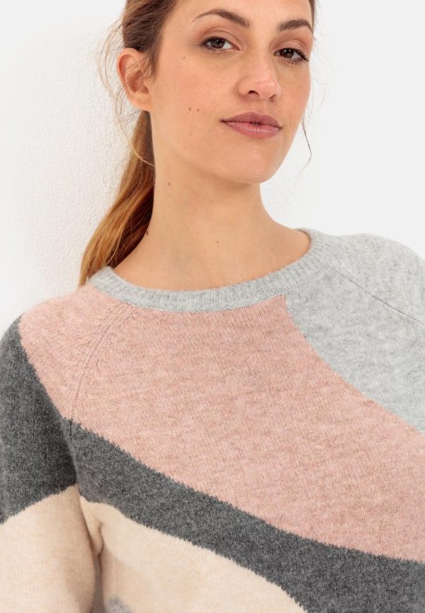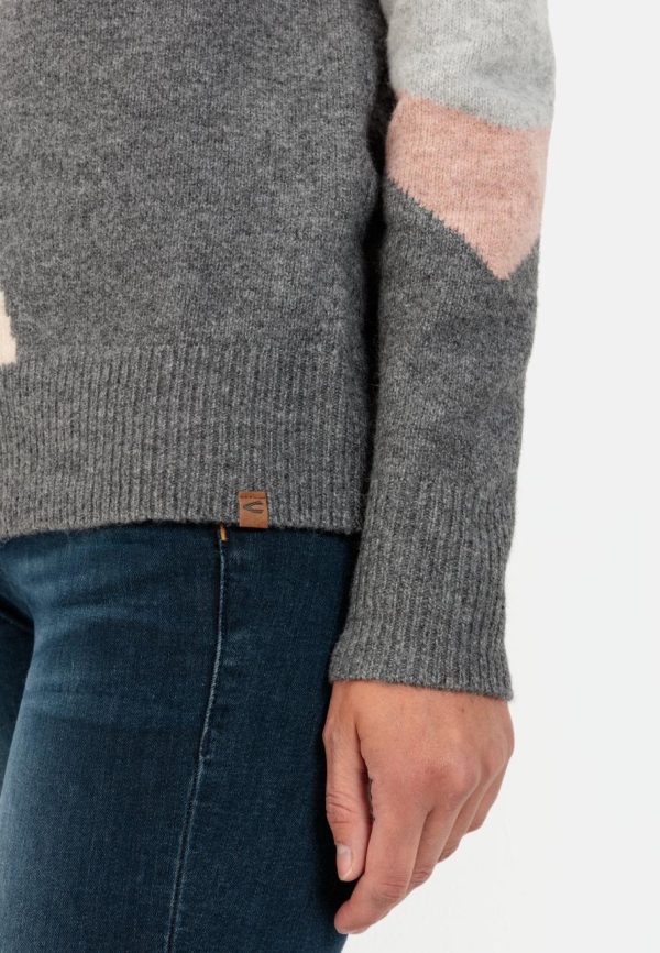 Multicolour knitted jumper in a light, soft intarsia knit with a hairy structure. The soft feel of the floral knit is essential for comfort. The raglan sleeves create a narrow shoulder look in the straight-cut round-neck jumper. The jumper for rainy autumn and cold winter days is the ideal companion for cosy styles. The jumper has a camel active brand label on the waistband.