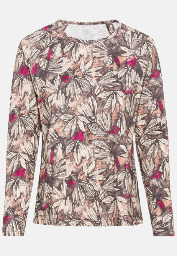 This long-sleeved shirt in organic cotton is a stylish basic that is instantly recognisable. The all-over floral print is a real eye-catcher. The high wearing comfort of the pure cotton quality makes the long-sleeved shirt a favourite top. The slub single jersey shirt has a classic regular fit, long raglan sleeves, a rounded neckline and a camel active logo embossed on the hem.