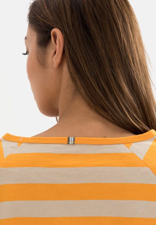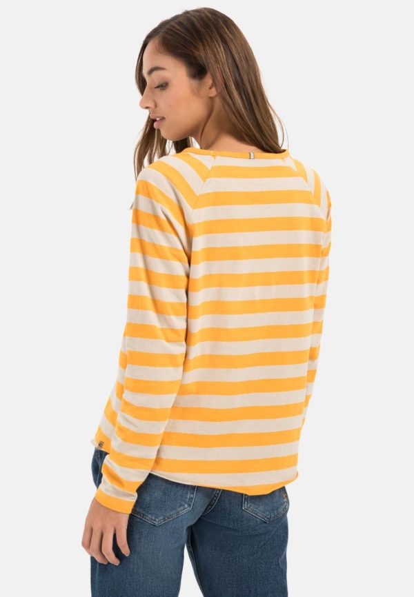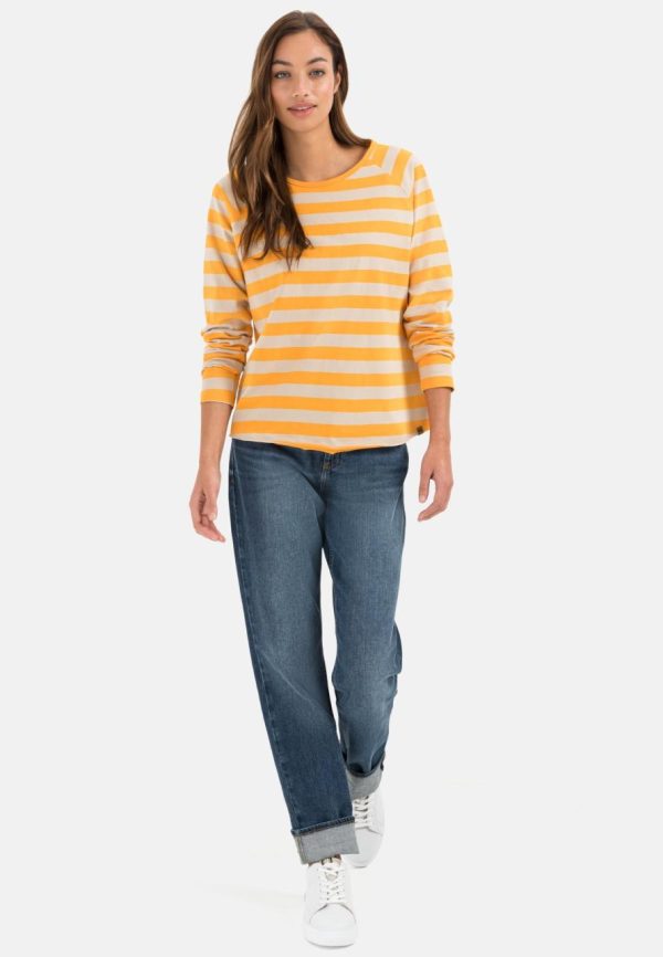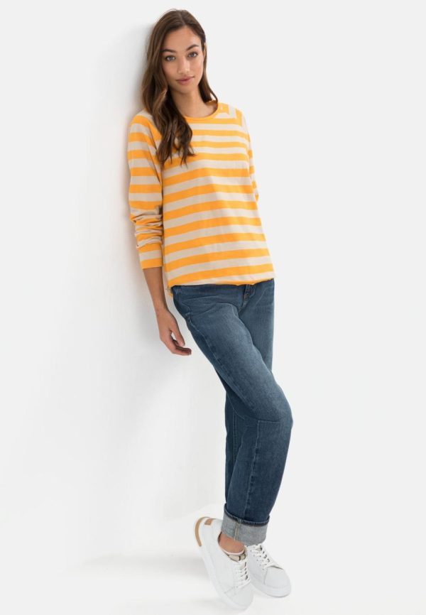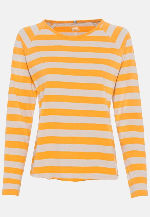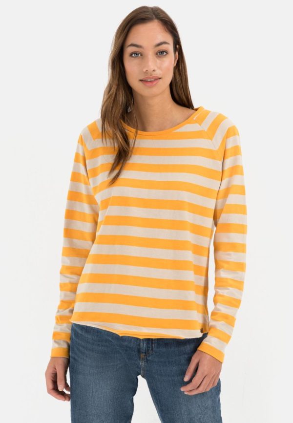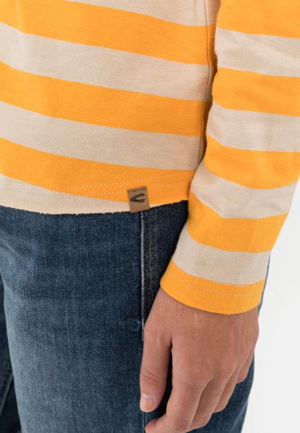 Striped tops make everyone feel like they’re on holiday: this long-sleeved shirt, with its striking striped pattern, is an essential for every season thanks to its finely coordinated colours. The boat neckline accentuates your shoulders and the open hem gives you a casual look. The top also impresses with its comfortable and easy-care cotton material. The shirt has a camel active label at the hem.