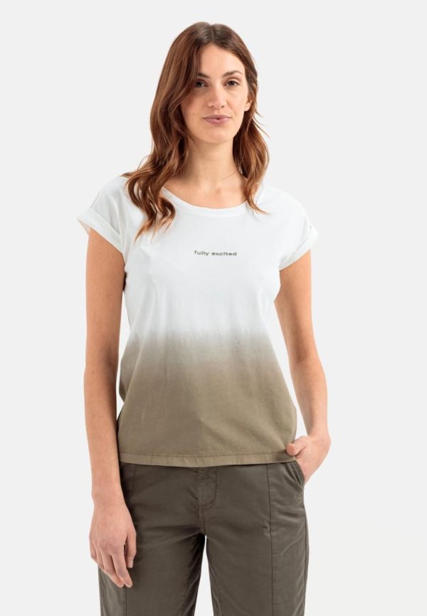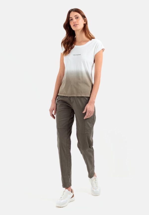 This elasticated cotton jersey T-shirt would make a comfortable sporty option for active everyday wear. Its soft, breathable and absorbent texture will lie gently on your skin. The dynamic coloring – which employs a dip-dye effect – and tasteful lettering on the chest create further visual highlights. A classic round neck and a camel active brand label on the hem complete this stylish top.