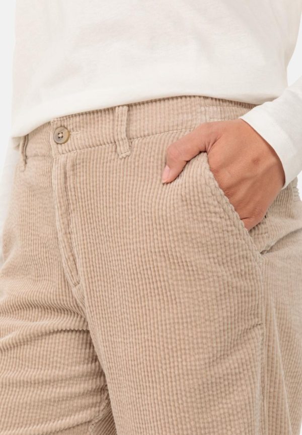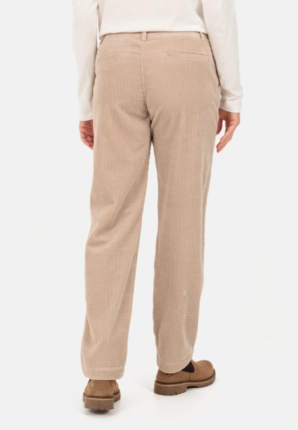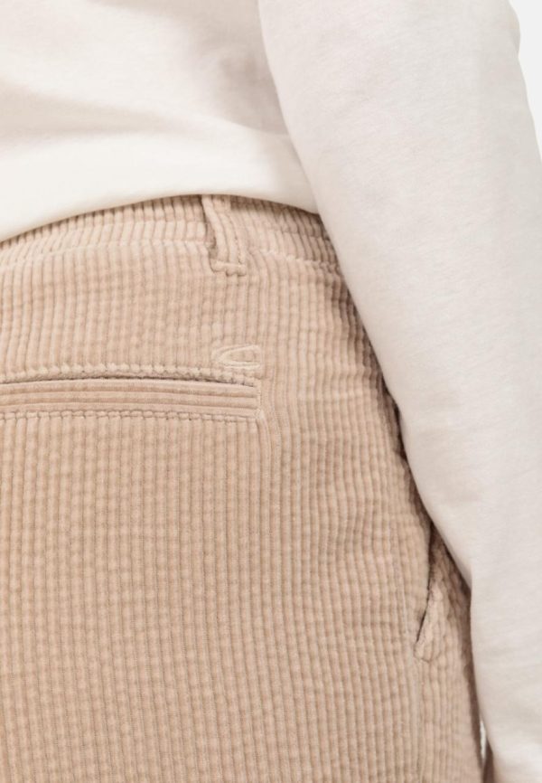 These loose-fitting trousers in soft corduroy offer both comfort and style. The soft cotton corduroy is fashionably ribbed, easy-care, strong and durable. Endless comfort is promised by the elastic waistband. Matched with the faux pockets, the minimalist, clean look has a high potential for versatile styling options. The camel active logo is embroidered on one of the back pockets.