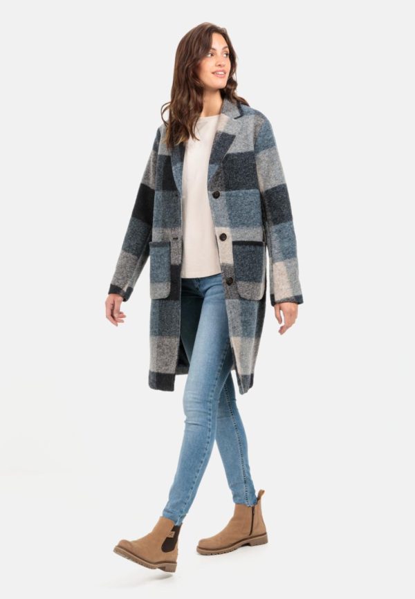 This premium cardigan features a striking large check pattern that delivers exceptional warmth and comfort through its high-quality virgin wool blend construction. The plush fabric is fully lined for added coziness, while the sophisticated color combination in the oversized checks creates a standout statement piece. Designed with a relaxed silhouette, this coat features a polished lapel collar and spacious front pockets for practical elegance. It secures with a button-front closure and showcases the distinctive camel active brand label at the front.