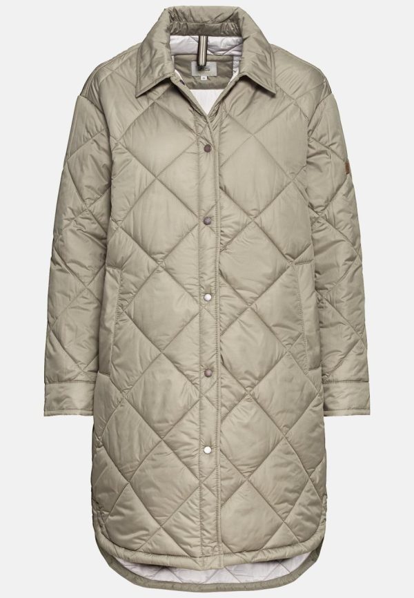 Stylish quilted jacket crafted from 100% recycled polyester. This contemporary overshirt delivers both eco-conscious style and everyday versatility. Featuring recycled synthetic fibers and a modern boyfriend fit, this essential piece offers perfect lightweight protection for transitional seasons. The diamond quilting provides subtle texture while side vents at the rounded hem ensure comfortable movement, finished with a distinctive camel active label on the left sleeve.