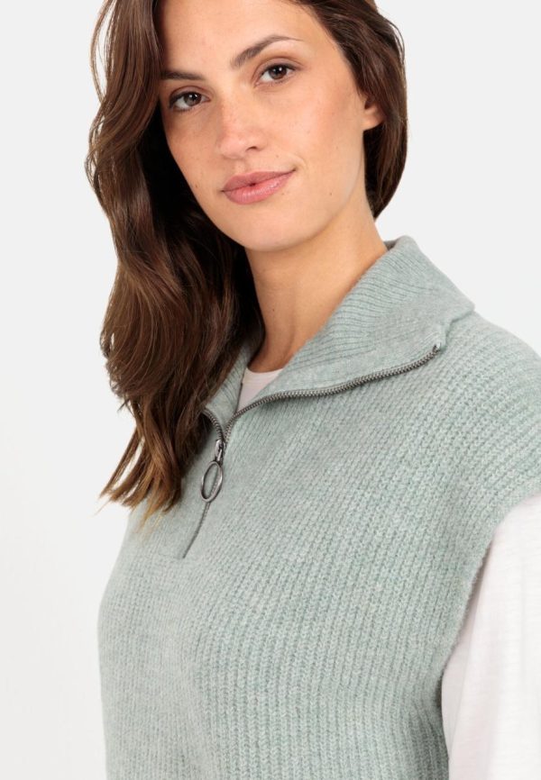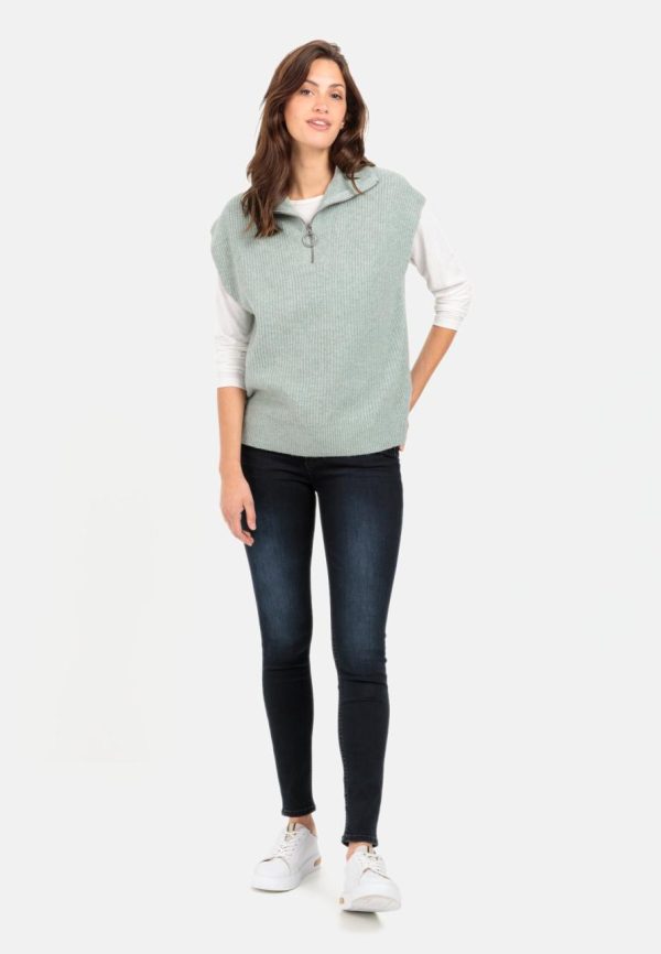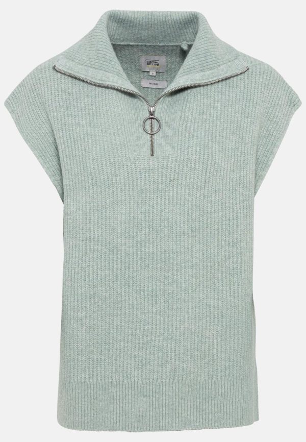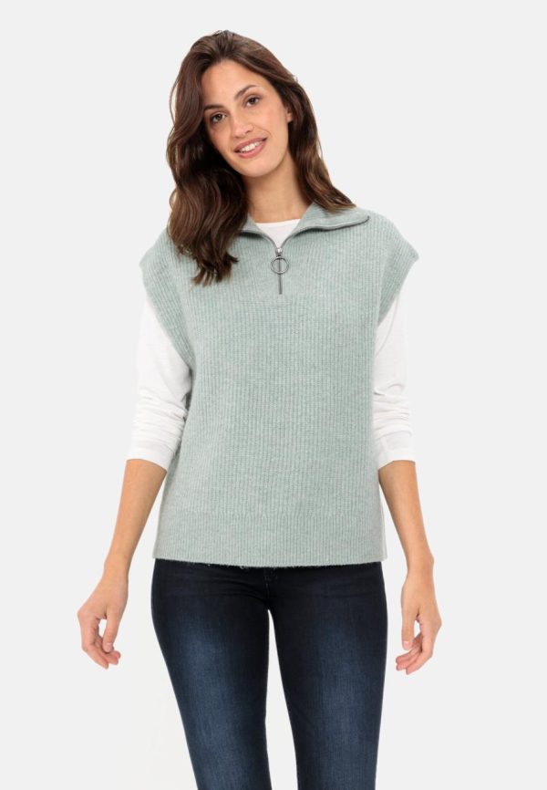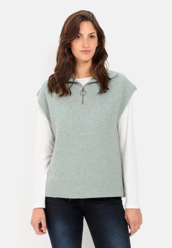 Elevate your layering game with this stylish sleeveless troyer crafted from recycled materials, designed to transform effortlessly into your go-to versatile piece. The premium soft knit delivers exceptional comfort throughout your day, while the distinctive ribbed structure creates a modern, fashion-forward appearance. This leisure-fit pullover features contemporary overlapping shoulders, a convenient collar zip, and a subtle camel active brand label at the hem for that perfect finishing touch.