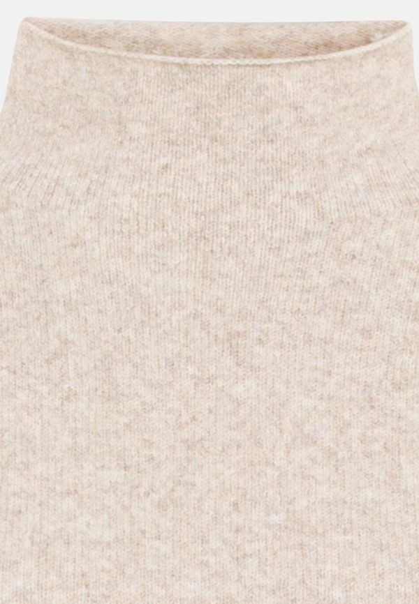 This beautifully crafted knitted pullover features a seamless turtleneck design with a contemporary oversized silhouette. The easy-care knit fabric, enhanced with a touch of wool, delivers exceptional softness and allows for complete freedom of movement. Designed with fashion-forward details including dropped shoulder seams, elegant trumpet sleeves, and subtle side seam slits for added style. Finished with a discreet camel active brand label at the ribbed hem for authentic branding.