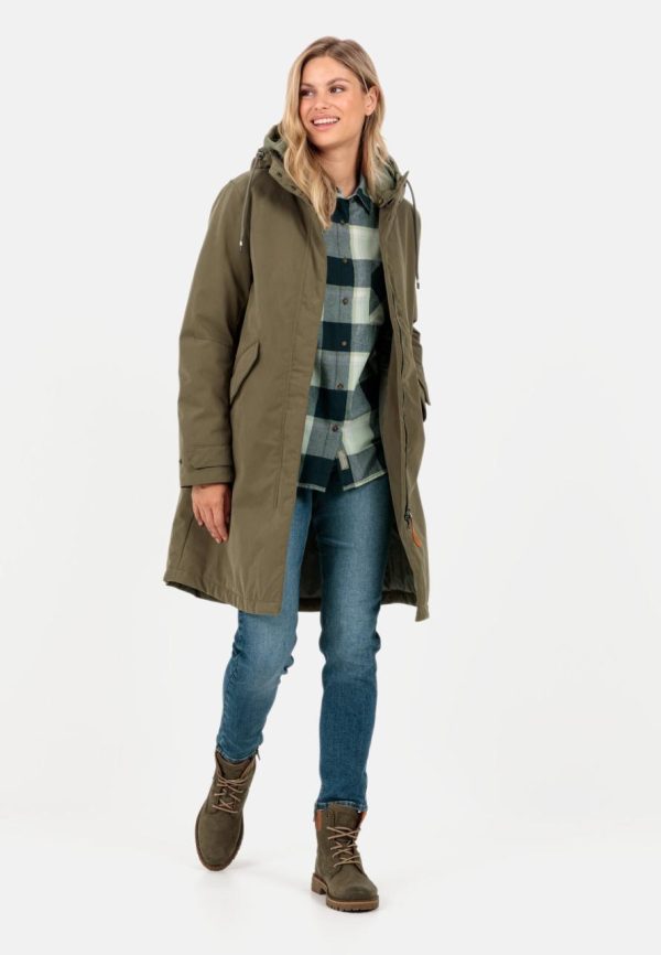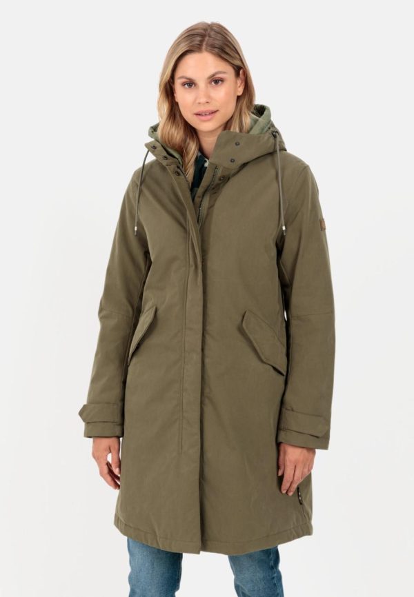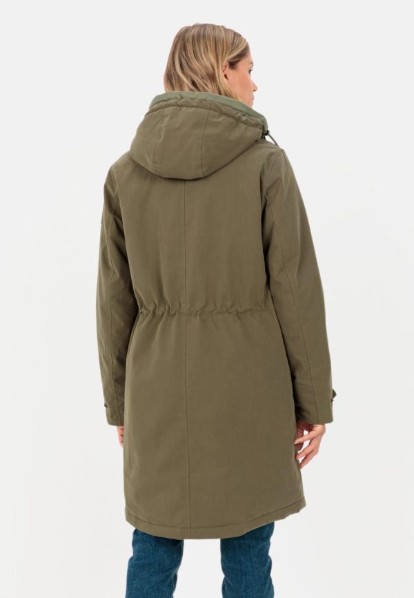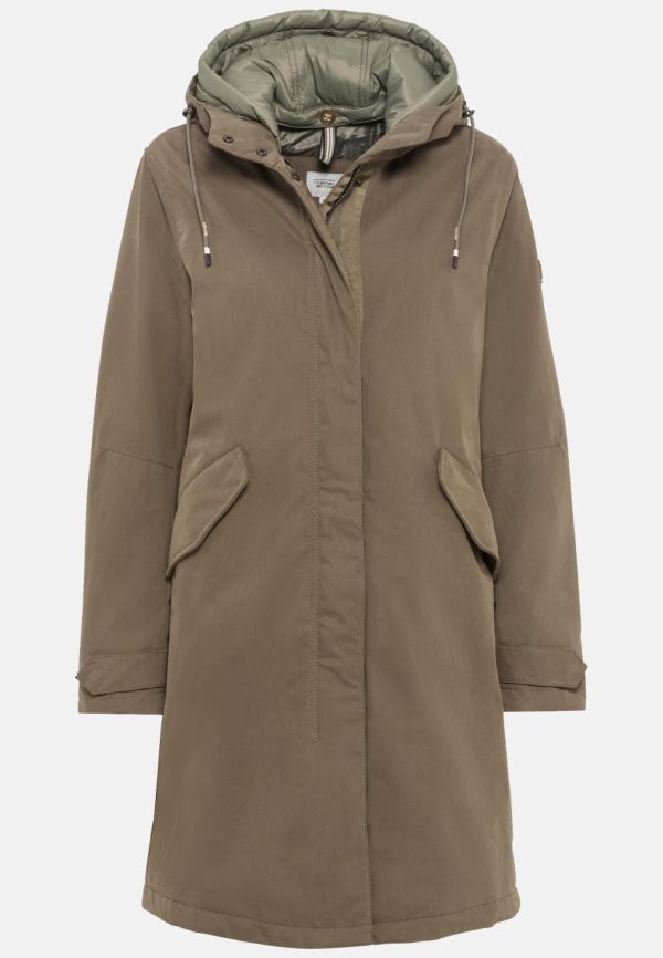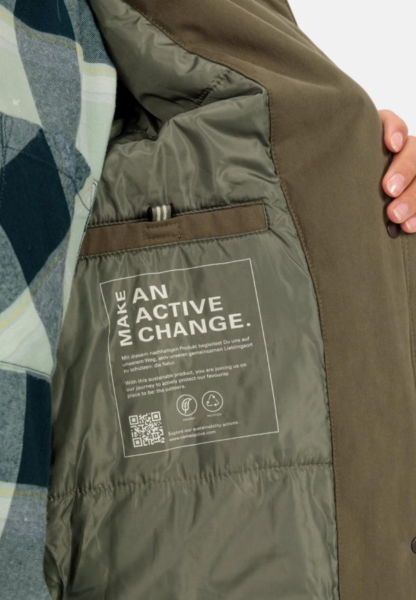 Crafted from premium recycled cotton blend, this innovative down-free coat delivers exceptional weather protection with its water-repellent and windproof construction. The contemporary design combines practical functionality with modern style. Features a comfortable relaxed fit, soft brushed finish, adjustable drawstring waist, and versatile hood with removable quilted lining. A secure storm flap with press studs enhances protection at the 2-way zip closure. Convenient front pockets feature snap-flap closures for added security. Finished with the distinctive camel active brand logo on the left sleeve.