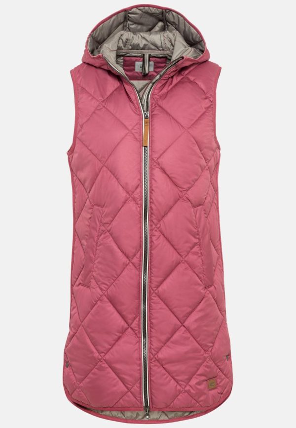 This stylish quilted long waistcoat crafted from contemporary recycled polyester makes the perfect addition to your urban autumn wardrobe and outdoor adventures. The functional water-repellent and windproof fabric features innovative down-free padding that delivers exceptional warmth with the lightweight comfort of recycled synthetic fibers. The relaxed long cut includes a practical hood, rounded hem, button-adjustable side vents, secure welt pockets, and a convenient 2-way zipper closure. Finished with the distinctive camel active label on the front for authentic style.