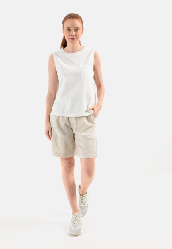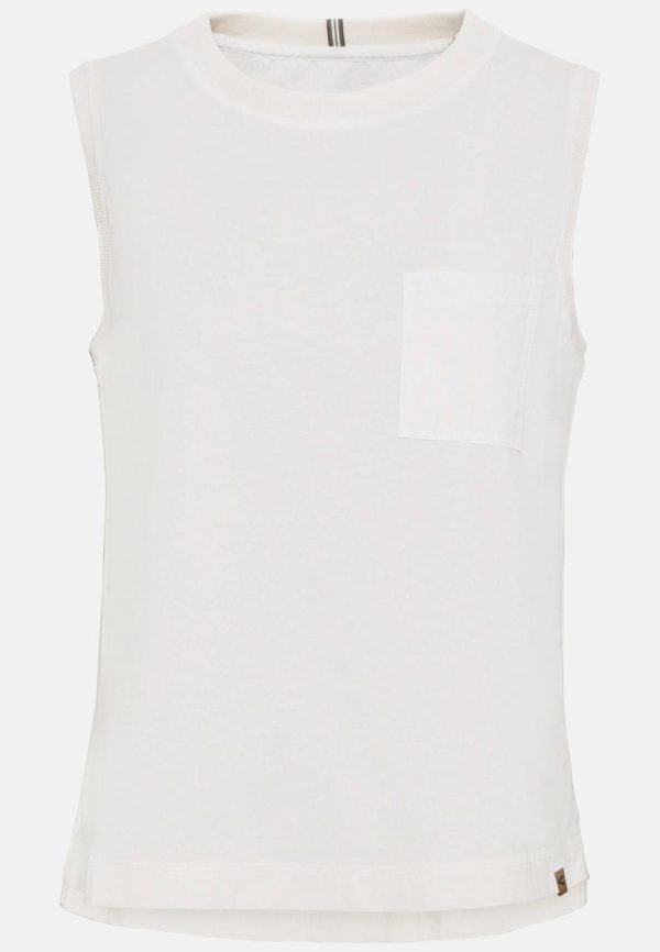 Elevate your casual wardrobe with this essential sleeveless tee that combines effortless style with everyday comfort. Crafted with premium cotton jersey in the front for superior softness and durable poplin fabric in the back for lasting wear, this versatile top offers the perfect balance of comfort and durability. The sporty-chic design features a convenient chest pocket and wide shoulder straps that provide both style and freedom of movement. Finished with the distinctive camel active brand label at the hem, this sleeveless tee delivers the perfect blend of athletic inspiration and casual sophistication.