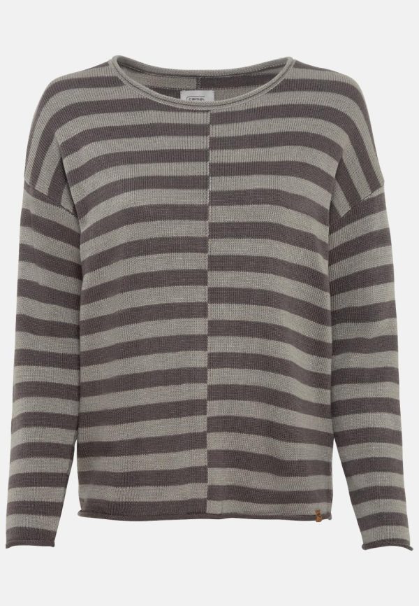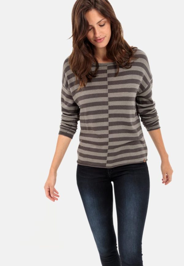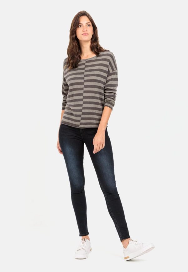 Stylish striped jumper crafted from easy-care flat knit fabric with the cozy warmth of virgin wool. This regular fit sweater offers exceptional comfort with fashion-forward rolled hems, contemporary overlapping shoulder seams, and an eye-catching decorative seam that creates a striking stepped stripe effect. Perfect for layering under a quilted vest with your favorite jeans and boots.